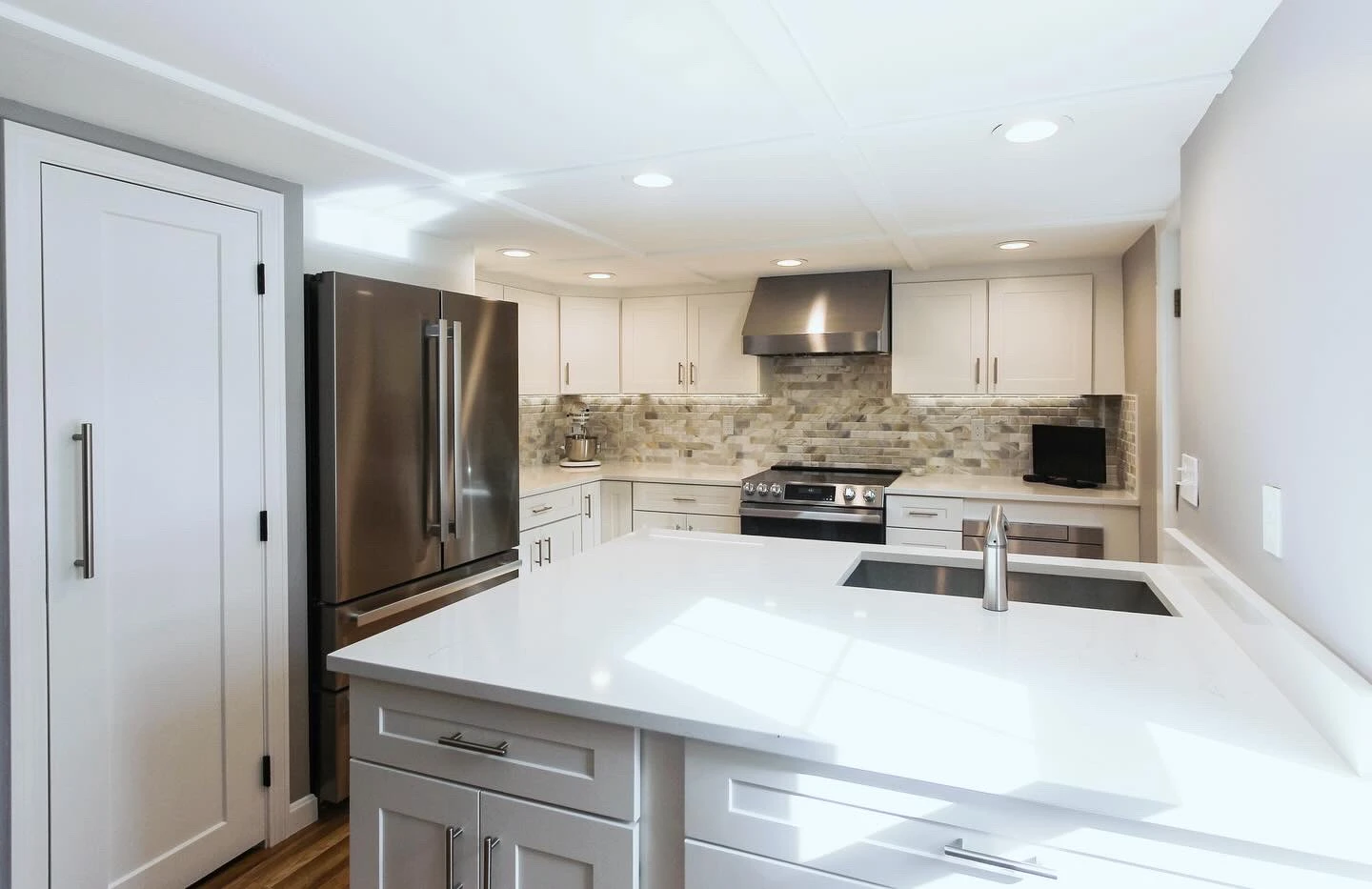 These clients came to me looking to update the kitchen in their family home after years of compromising their needs to focus on their family. They were unsure of how the process worked but knew they wanted an updated space, with clean lines, durable finishes, and a more contemporized aesthetic. They knew that cleanability was key and their budget was modest. Taking all of this into account, we were able to provide for them a kitchen that both fit within their budget and aesthetic preferences. They were so excited about the end result of this project and said “we feel like we moved!”.